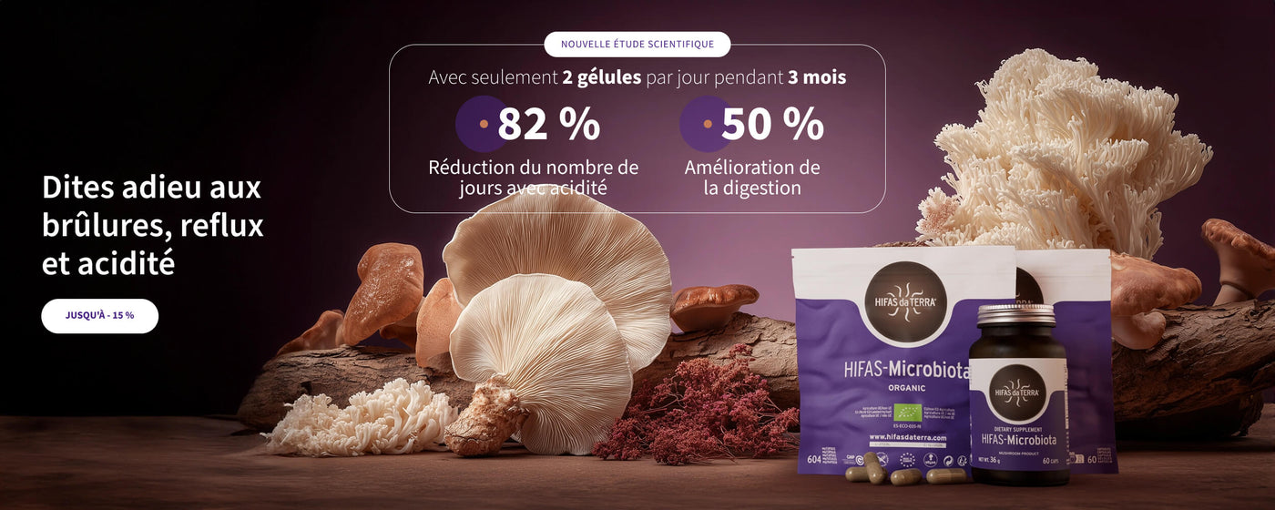 · COMPLÉMENTS À BASE DE CHAMPIGNONS PURS · RECOMMANDÉ PAR LES PROFESSIONNELS DE SANTÉ · EXTRAITS BIOLOGIQUES · 100% NATUREL · SANS ADDITIFS
