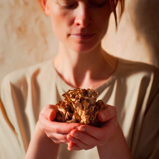 Umbellatus appartient à l’ordre des Poriales, à la famille des Poriaceae et au genre Grifola, qu’il partage avec le Maitaké (Grifola frondosa). Cette variété est saprophyte : elle décompose le bois pour se nourrir et, à mesure qu’elle mûrit, sa chair passe d’une texture blanche et tendre à une consistance dure et ligneuse. On peut la trouver à l’état sauvage en forêt, atteignant jusqu’à 20 kg et couvrant une surface de 10 à 50 cm. La partie souterraine du champignon, le sclérote, rappelle la truffe, ce qui explique pourquoi dans certains pays on l’appelle aussi « champignon de porc ». Diverses études ont analysé la composition de son mycélium et ont conclu qu’il se distingue par la richesse de ses substances bioactives.