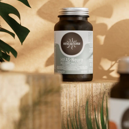 Hifas-neuro est un complément alimentaire formulé à base de champignons purs Hericium erinaceus (Crinière de Lion), Inonotus obliquus (Chaga) et d'extraits naturels comme le Bacopa Monnieri, Ginkgo Biloba, Phosphatidilsérin et l'adaptogène Rhodiola rosea. Tous ces ingrédients ont été soigneusement sélectionnés pour leurs bienfaits autour de la sphère cognitive.
