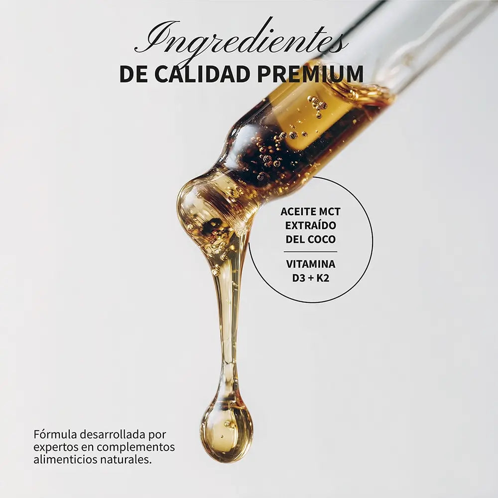 Its innovative and effective liquid formula is perfect for assimilation and also ideal for people with swallowing difficulties or those taking multiple medications. WITH VITAMIN D3 THAT HELPS TO: Normal function of the immune system. Normal absorption/utilisation of calcium and phosphorus. Normal muscle function. Maintenance of normal bones and teeth. Normal blood calcium levels. The process of cell division. WITH THE MOST POTENT AND ACTIVE VITAMIN K2 (menaquinone 7) Contributes to normal blood clotting. Contributes to the maintenance of normal bones. WITH MCT OIL THAT: Promotes rapid and effective absorption.