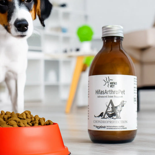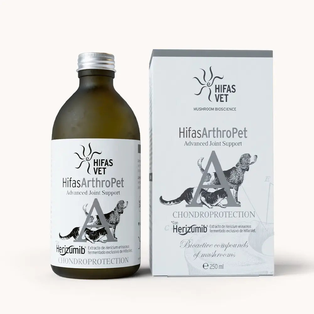 Hifas Arthro Pet est une formule naturelle qui soutient les articulations de vos animaux de compagnie. Hifas Arthro Pet contient des extraits de champignons fonctionnels et est enrichi d'acides gras oméga 3, silibine et protéines de pois.