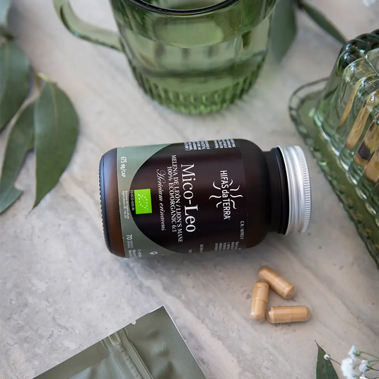 Mico Leo, extrait d'Hericium est un complément alimentaire en gélules végétales qui contient de l'extrait bio de Crinière de Lion (Hericium) 100% pur et de la vitamine C issue de l'acérola.